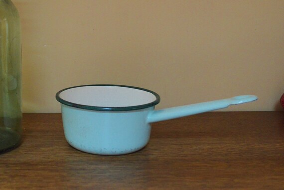 French Enamel Saucepan Vintage Duck Egg Blue Small Enamelware Country Kitchen Farmhouse Kitchen French Cuisine French Kitchen